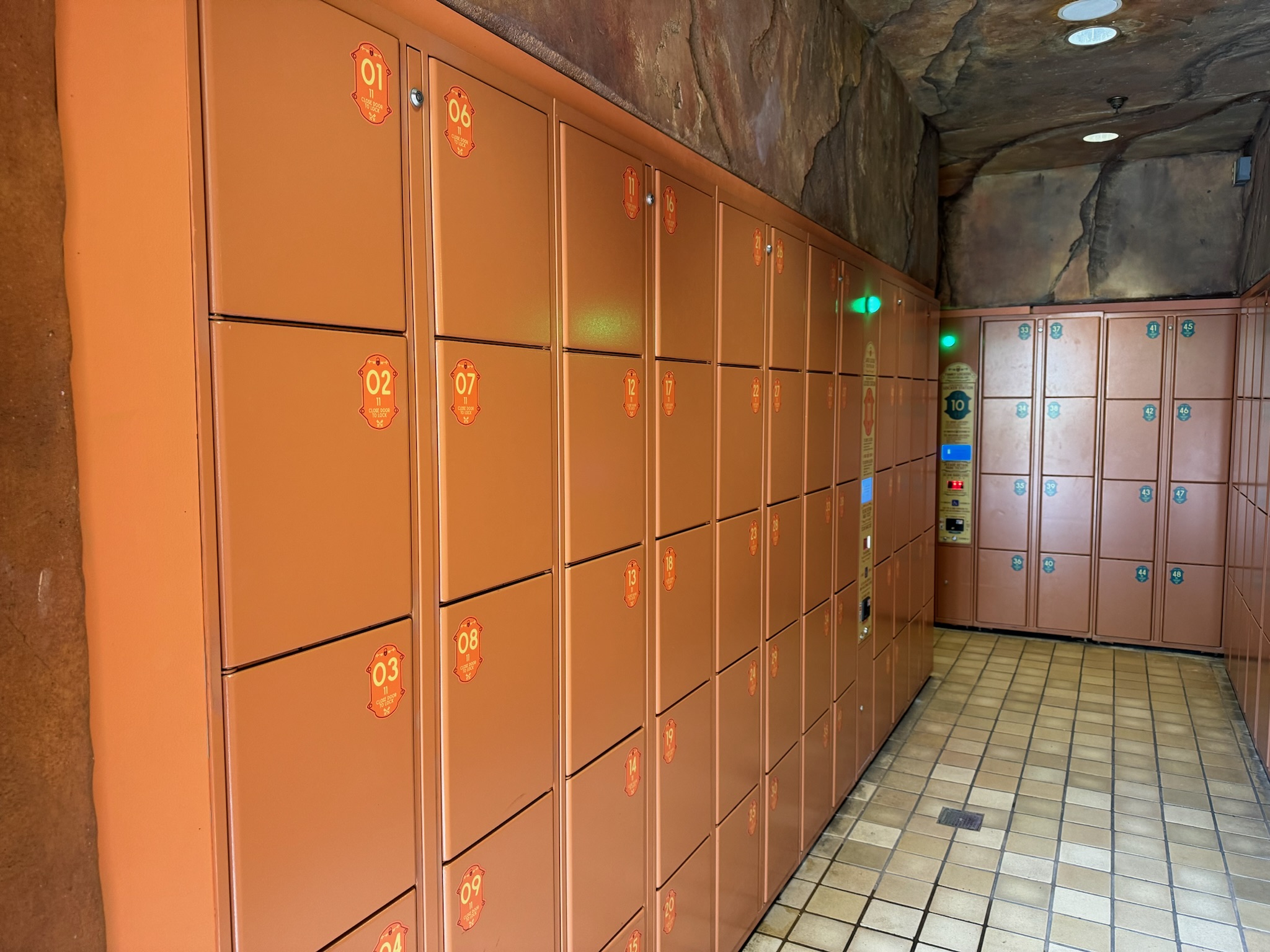 The brand new Universal theme park, Epic Universe has a few updates to the locker system that differ from the other two Universal theme parks. Universal has made the complimentary locker system a whole lot easier. Each ride that requires lockers will have a set of double-sided attraction lockers right in the queue. This avoids congestion in locker bays and makes the line move quicker!